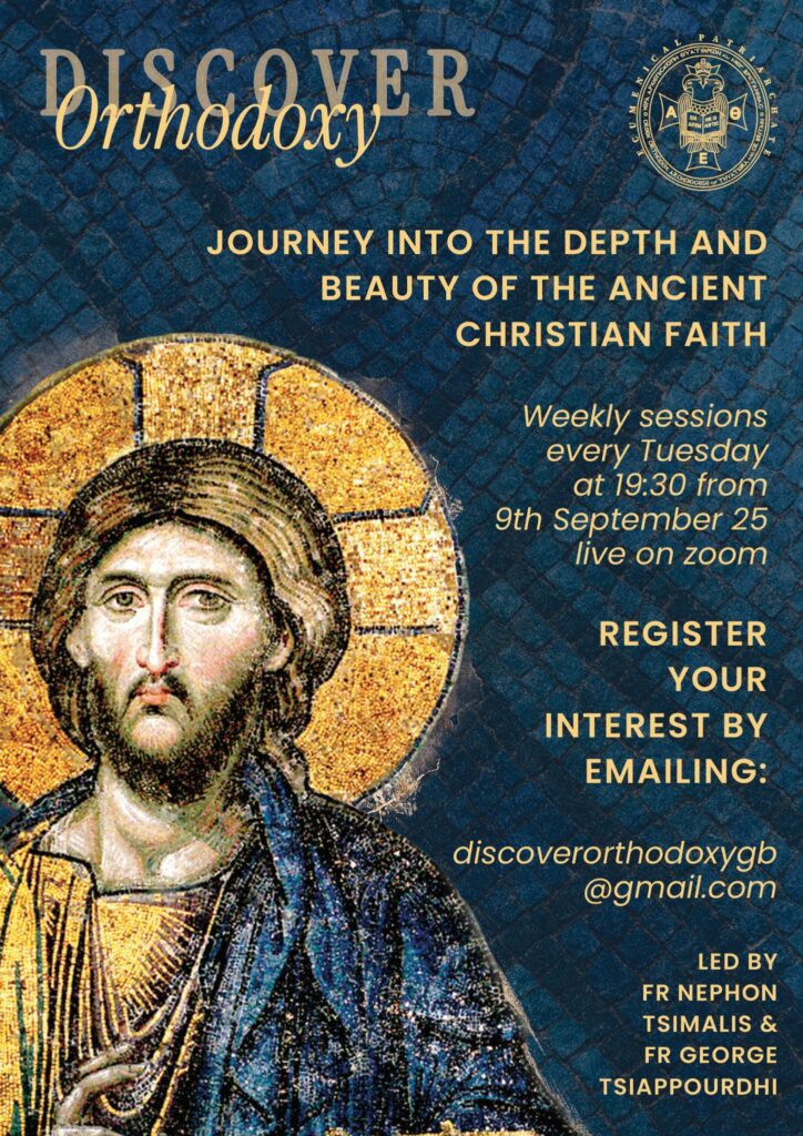 Additionally, we warmly invite and encourage anyone interested in discovering more about the Orthodox Church to join the Archdiocese’s “Discover Orthodoxy” weekly sessions, which begin on Tuesday, 9th September at 7:30 PM via Zoom. These sessions, led by Fr Nephon Tsimalis and Fr George Tsiappourdhi, offer a journey into the depth and beauty of the ancient Christian faith.